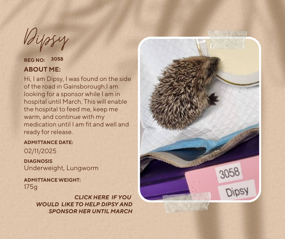 By sponsoring a hedgehog, you are making a real difference in the life of a wild animal, helping us provide the care it needs to recover and return safely to the wild.